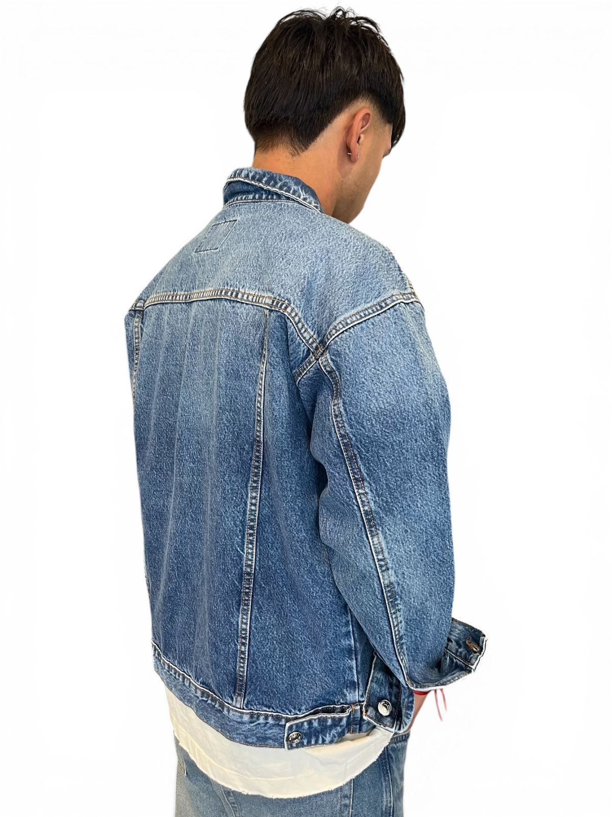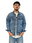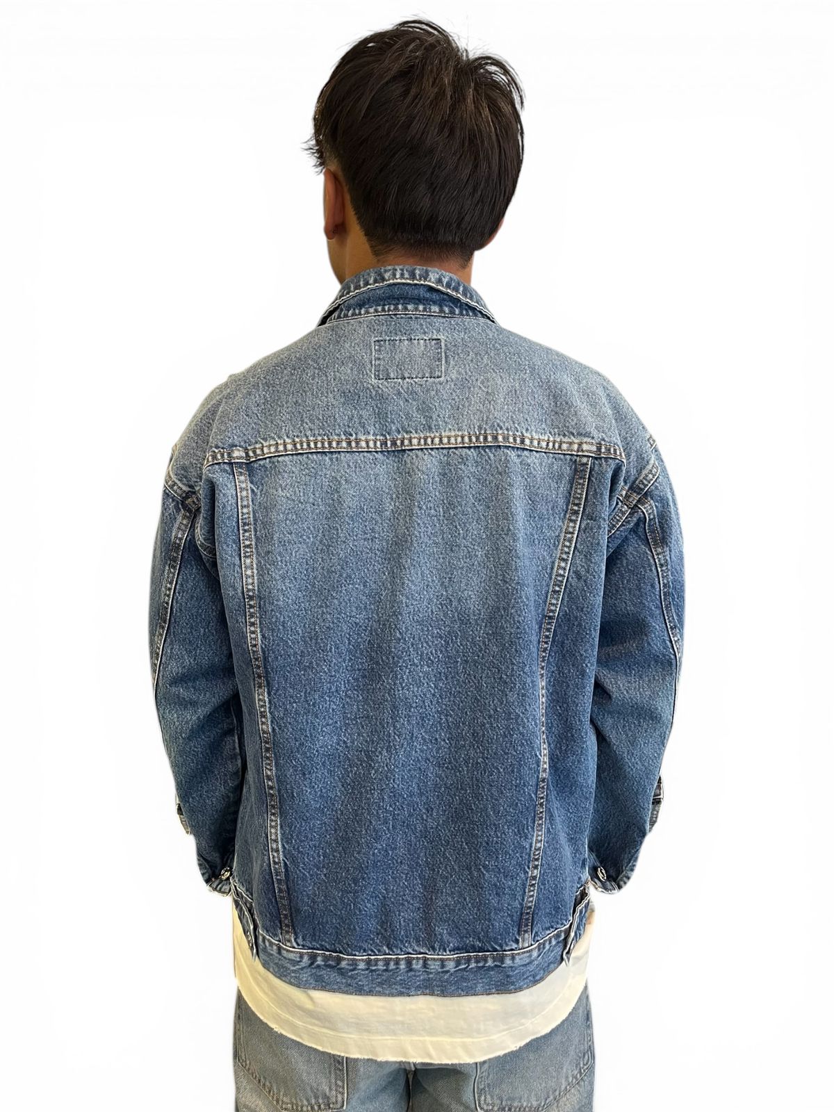 Campera de jean rigido, azul con efecto nevado muy suave.