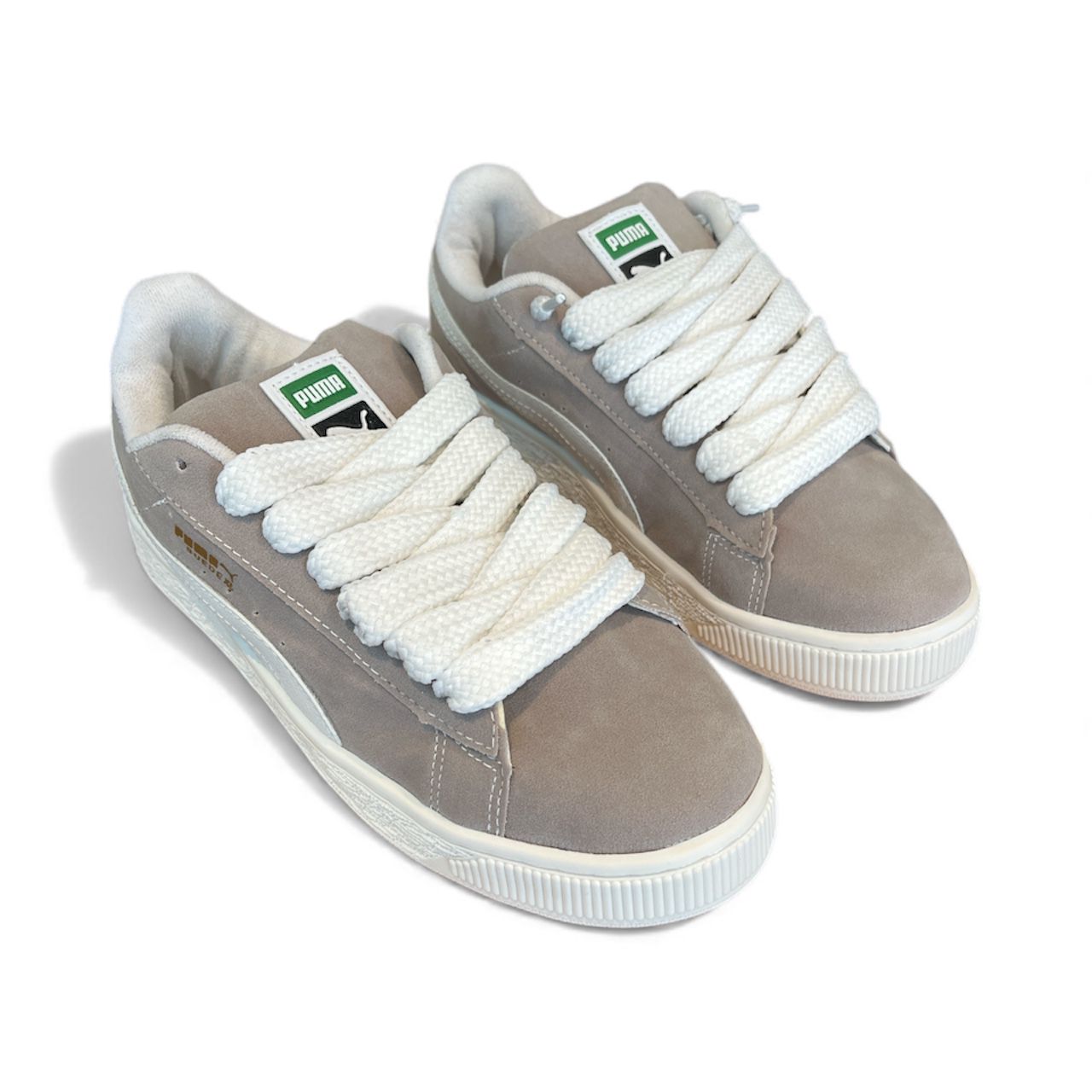 Se caracterizan por su diseño XL, con cuello y lengüeta exageradamente acolchados para un look distintivo y mayor comodidad. Su suela de goma es más gruesa y robusta que el modelo clásico. La capellada es de gamuza con el icónico fromstrip (franja lateral) de PUMA en cuero ecológico.