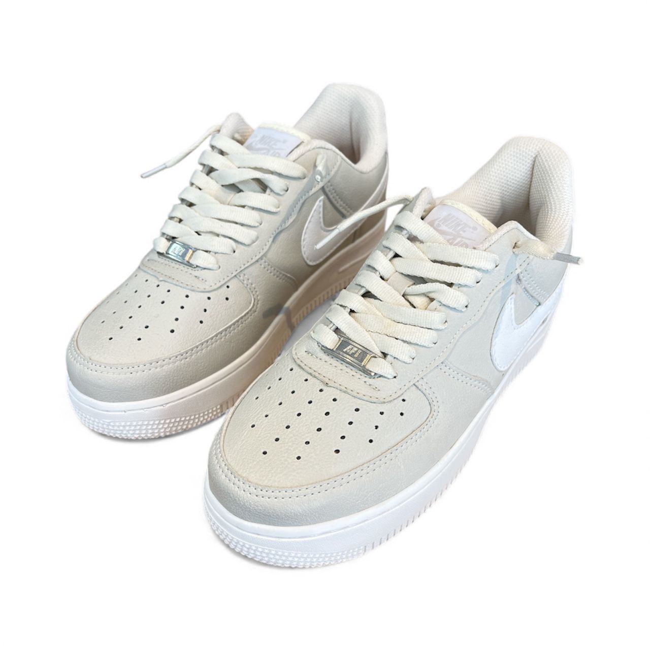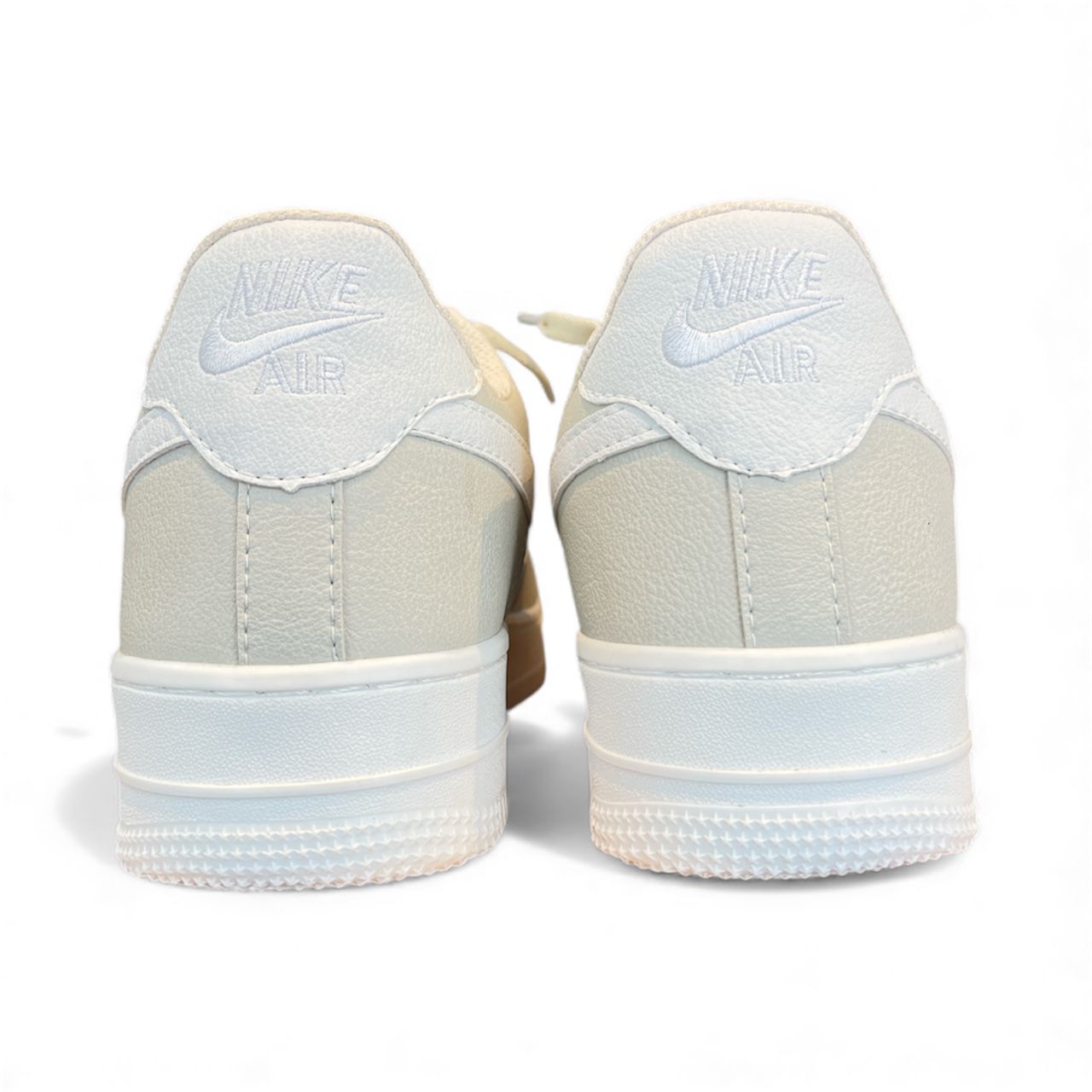 Este modelo específico de NIKE AIR FORCE 1 presenta yna paleta de colores que combina el blanco con un tono hueso claro, ofreciendo un look neutro y versátil.