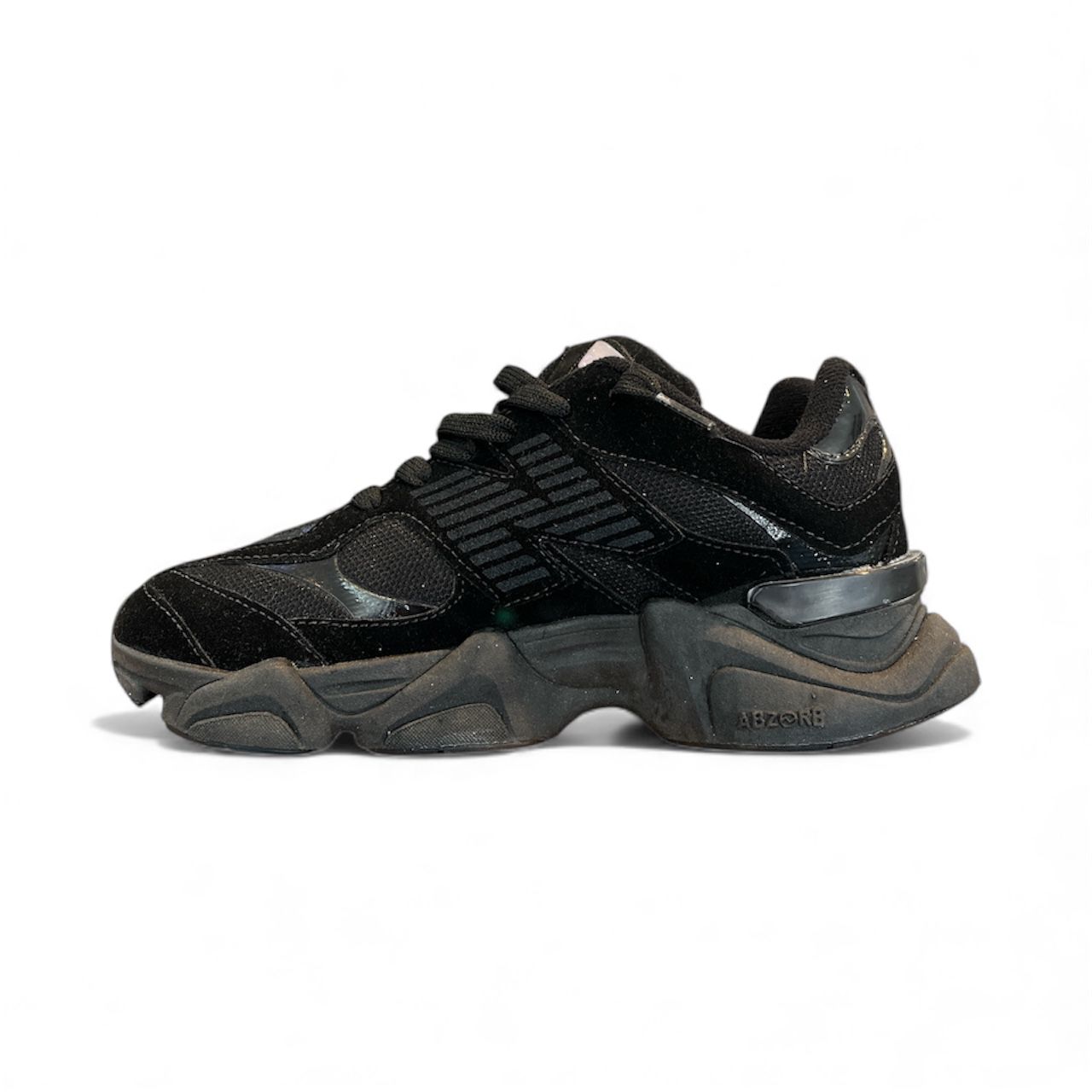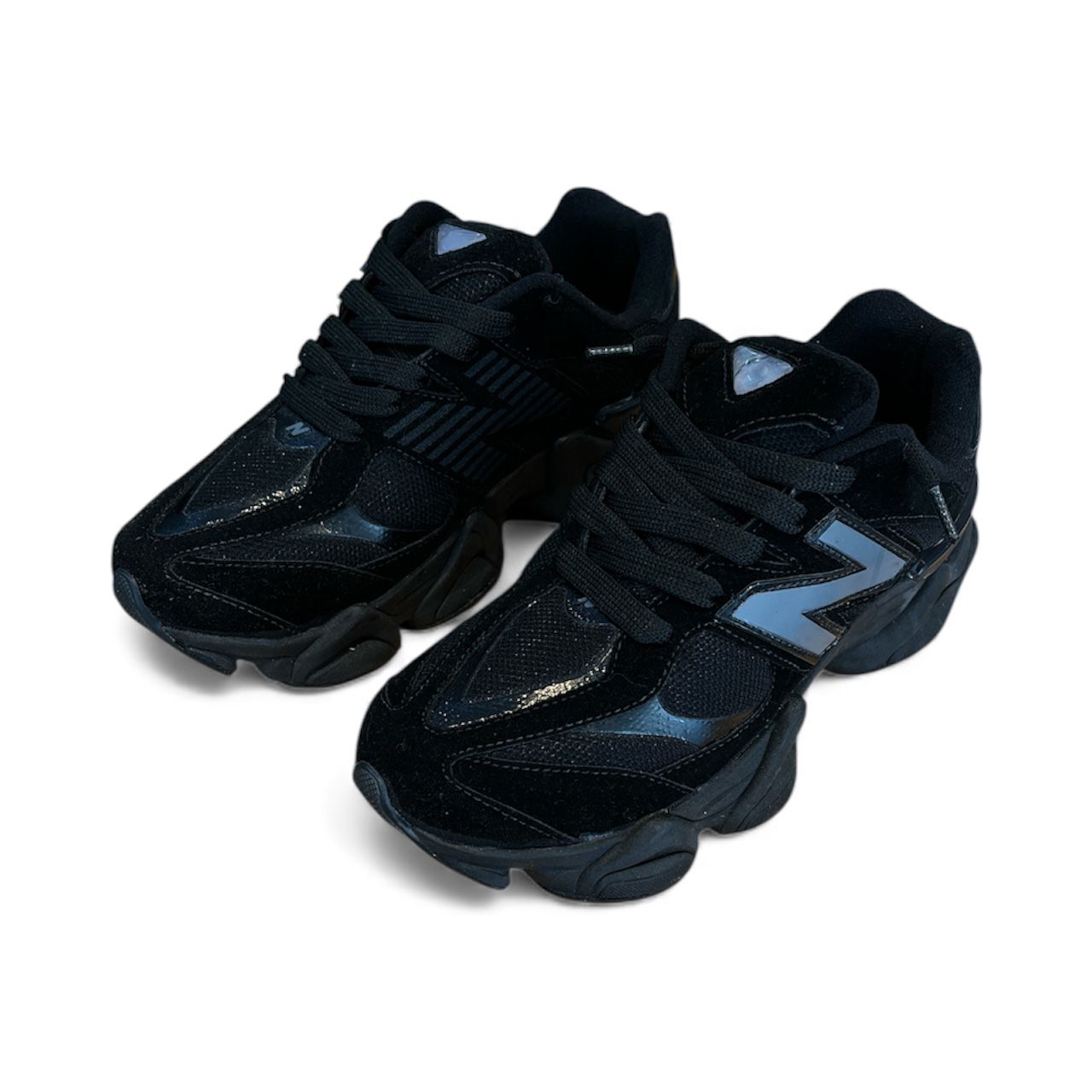 TOTAL BLACK: es completamente negra, con el icónico logo lateral de N en gris. La parte superior es de malla y gamuza y la suela es de goma.