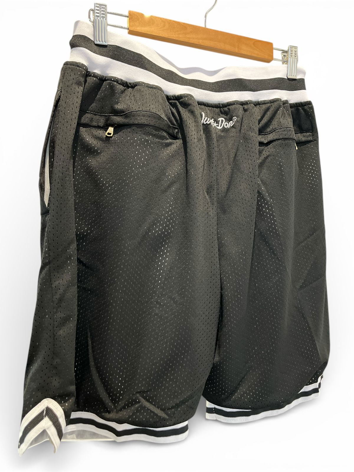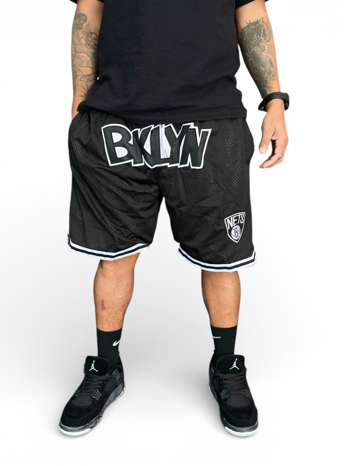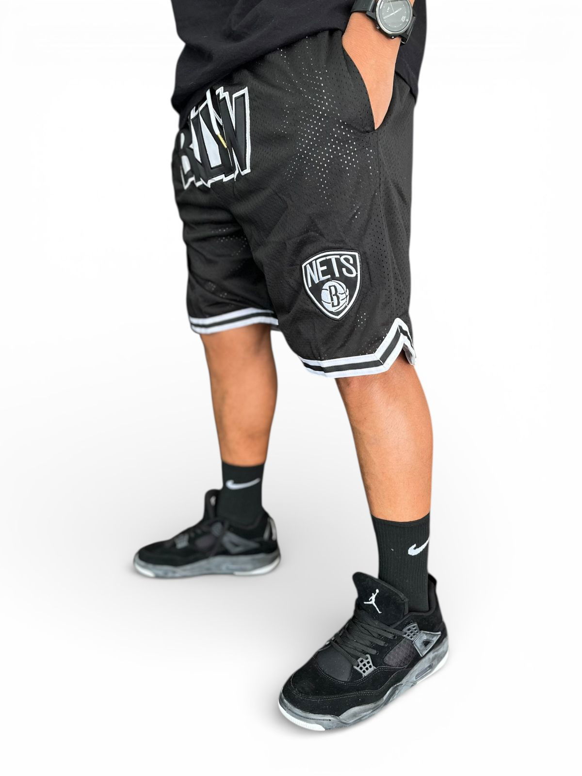 Fabricado con doble tela, cintura ancha con elástico y cordón para un excelente ajuste. Posee dos bolsillos adelante sin cierre y dos bolsillos traseros con cierre. Logo ¨BKLYN¨ grande bordado en la parte de adelante, y el icónico logo de NETS B un poco más chico bordado sobre la pierna izquierda. En la parte trasera, justo bajo la pretina, posee bordado de la marca ¨Just ★ Don¨.