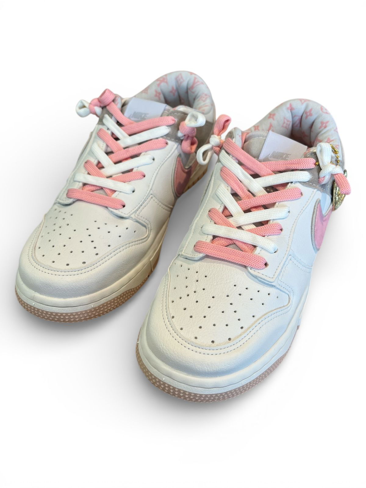 Esta zapatilla Nike SB dunk low está personalizada con el icónico monograma estampado de Louis Vuitton en su interior.