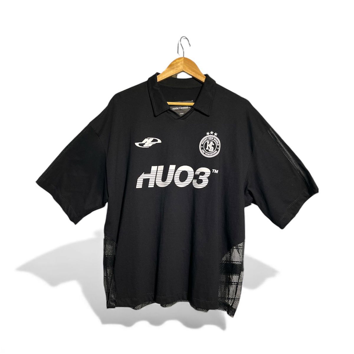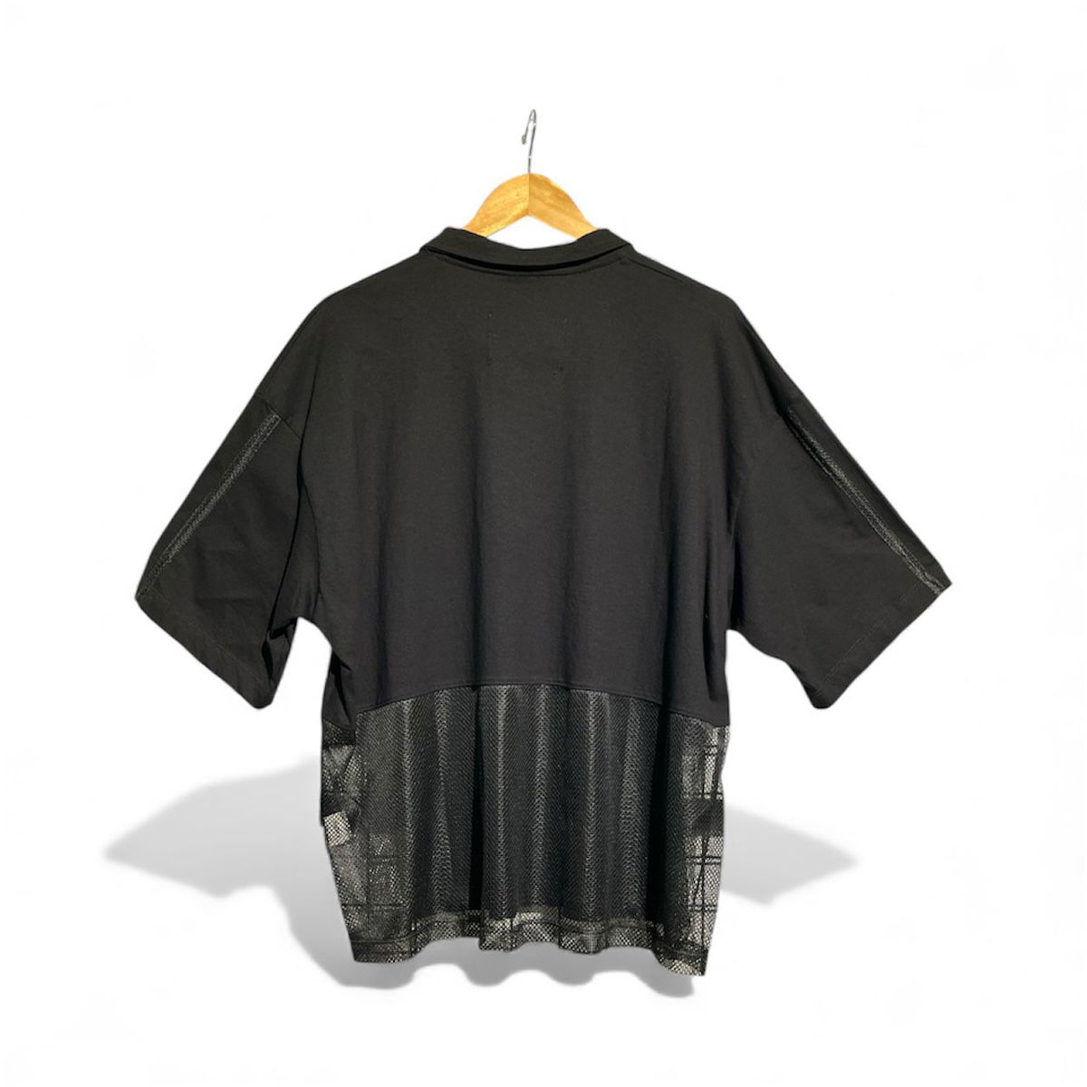 De moldería oversize, con cuello tipo polo sin botones. Confeccionada en una combinación de tela de algodón y tejido tipo red. Ideal para quienes buscan resaltar con un diseño único.