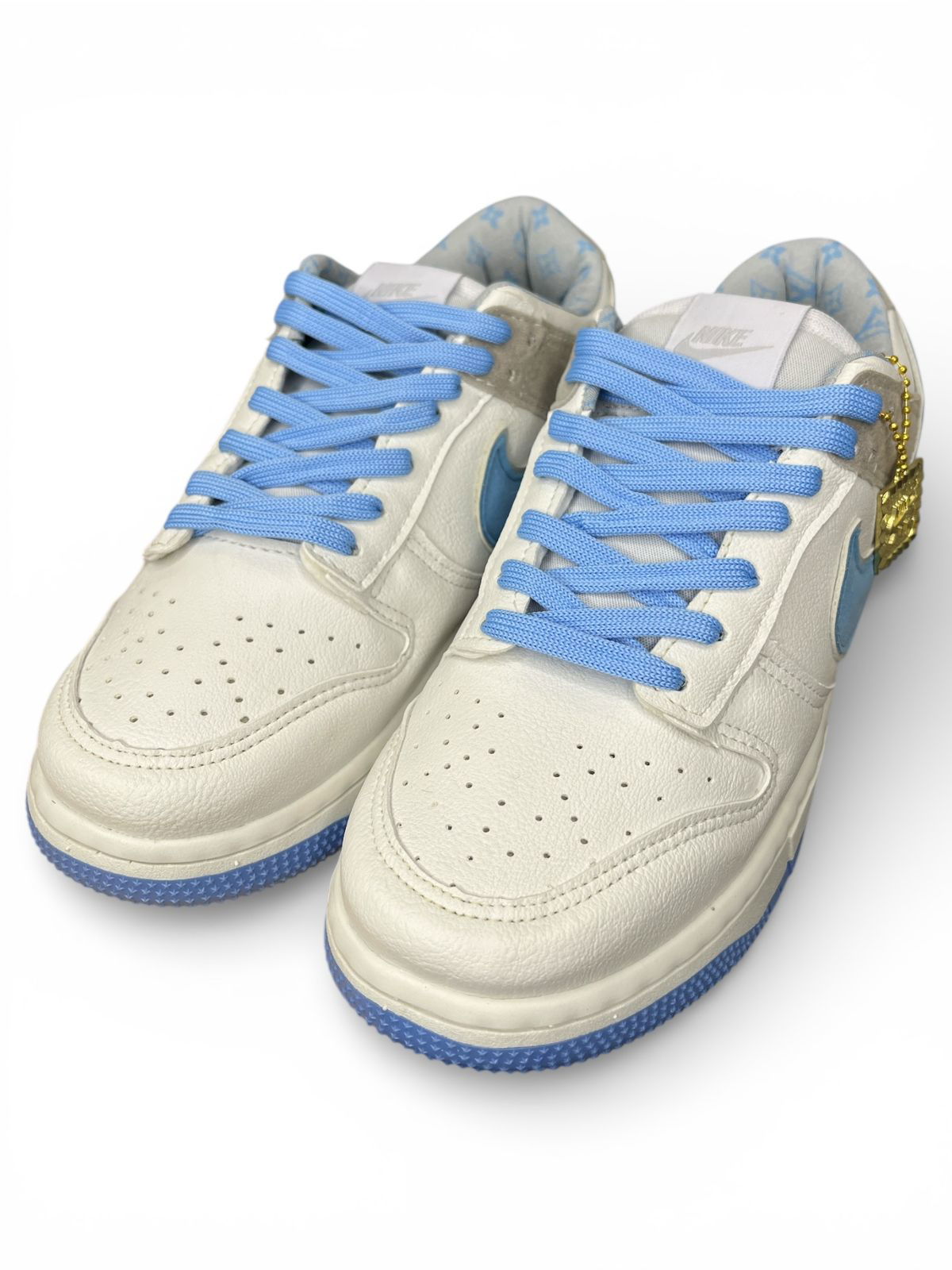 Esta zapatilla Nike SB dunk low está personalizada con el icónico monograma estamp.ado de Louis Vuitton en su interior.